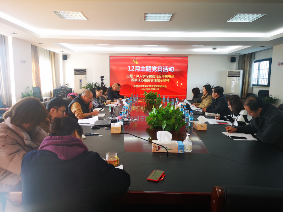 12月15日,电教馆党支部召开2020年12月主题党日活动,主题党日围绕“深入学习贯彻习近平总书记视察江苏重要讲话指示精神”开展,会议由党支部俞伽书记主持学习,全体党员参加。