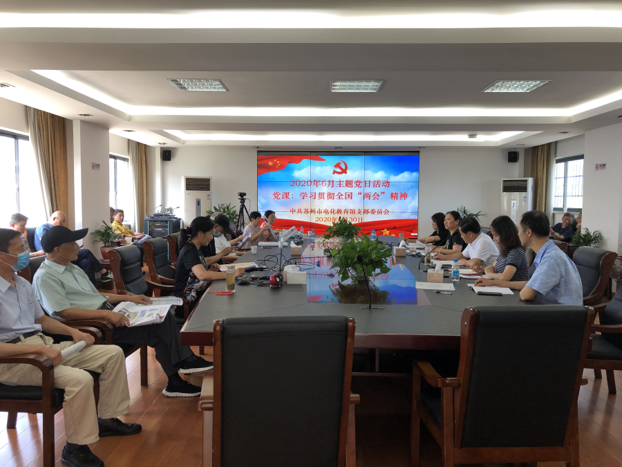 为更好地学习贯彻全国“两会”精神,苏州市电化教育馆党支部于2020年6月30日上午开展主题党日活动,组织全体教职工集中学习“两会”精神,学习活动由党支部俞伽书记主持,部分退休教职工回馆参加活动。