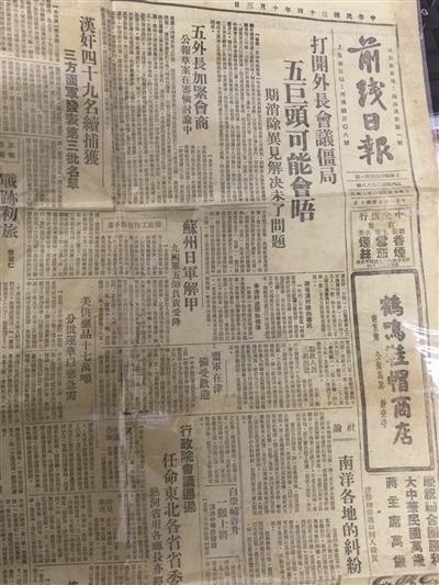 《前线日报》刊登《苏州日军解甲,九四军五师负责受降》