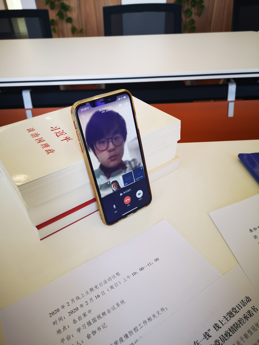 为坚决贯彻习近平总书记关于新型冠状病毒感染的肺炎疫情防控工作的重要指示精神,严格落实好中央、省委和市委对新型冠状病毒肺炎疫情防控的决策部署,根据《关于开展“堡垒筑在一线、党员冲在一线”线上主题党日活动的通知》精神,2020年2月16日上午,苏州市电化教育馆党支部在俞伽书记的带领下依托“学习强国”视频会议系统开展线上主题党日活动,引领全体党员在疫情防控中守初心、担使命,众志成城打赢疫情防控阻击战。