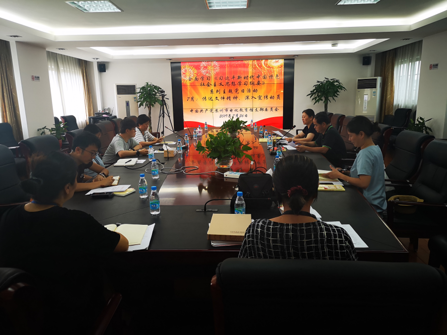 根据中共苏州市委教育工作委员会关于开展全面学习《习近平新时代中国特色社会主义思想学习纲要》系列主题党日的通知(苏教组【2019】17号)文件要求,2019年7月26日,电教馆党支部开展以“传达文件精神,深入宣传动员”为主题的2019年7月主题党日活动。活动由党支部俞伽书记主持,在职党员参加,会上向全体党员发放《习近平新时代中国特色社会主义思想学习纲要》。
