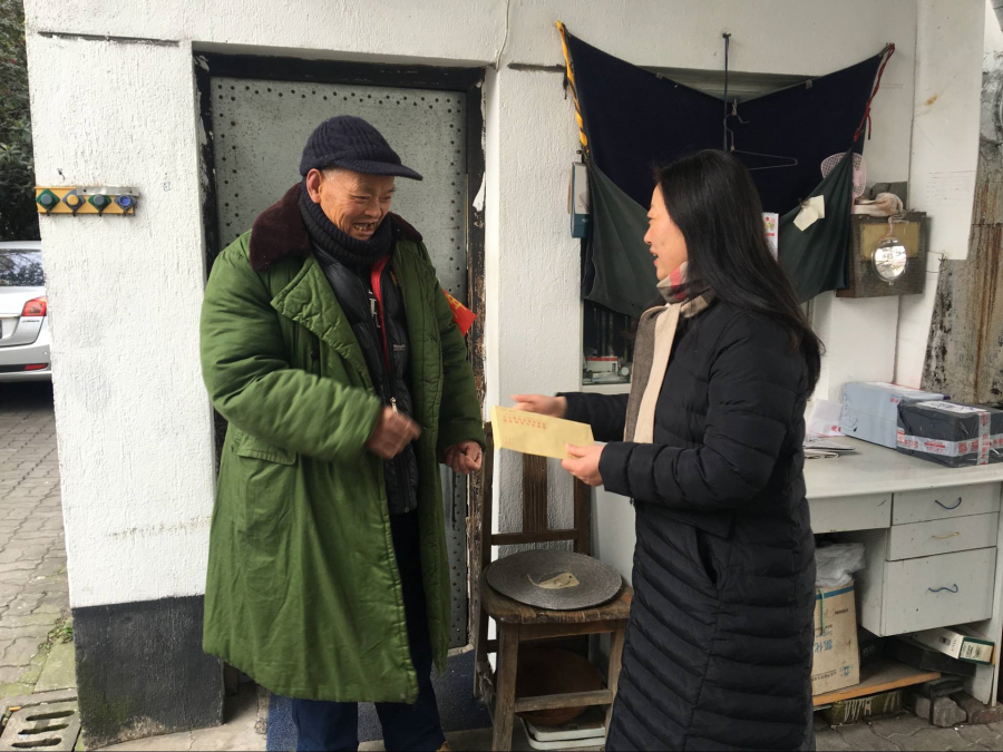 上午在万年社区许书记的陪同下,我们电教馆党支部一行三人走访慰问了劳动路98号自治小区的看门人钱大爷,党支部俞书记亲切询问了钱大爷的工作、生活和身体情况,并将我们全体党员捐助的1000元慰问金送到钱大爷手里,将温暖送到钱大爷的心坎上。